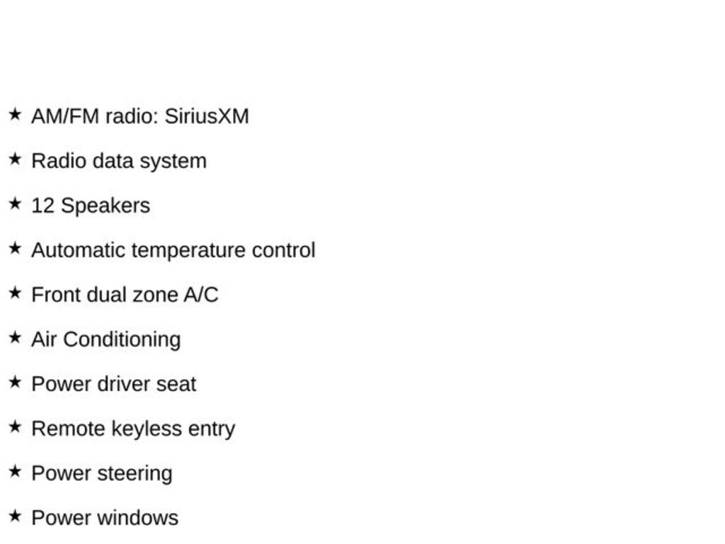 - Radio: AM/FM/SiriusXM Audio System