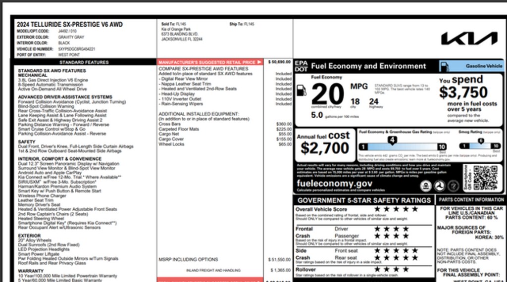 Used 2024 KiaTelluride SX-Prestige SUV V6 DOHC
