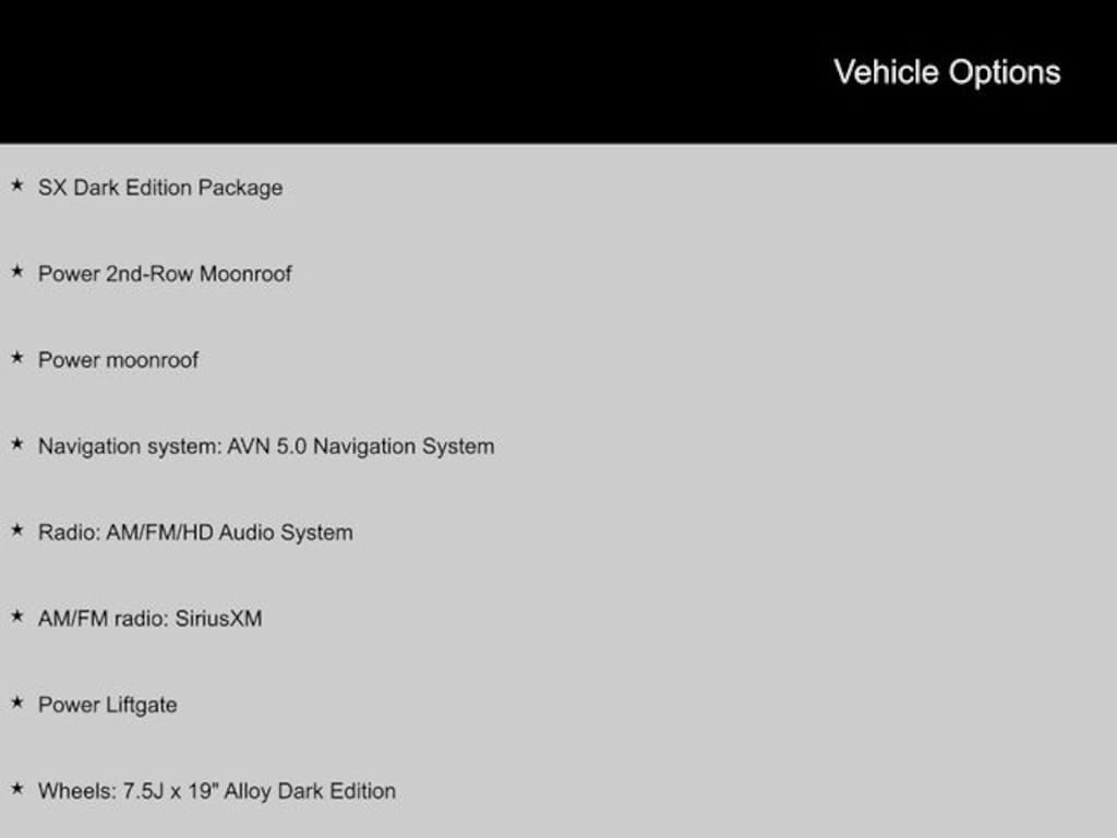 2025 Kia Carnival AM/FM radio: SiriusXM, Navigation system: AVN 5.0 Navigation System, Power 2nd-Row Moonroof, Power Liftgate, Power moonroof, Radio: AM/FM/HD Audio System, SX Dark Edition Package, Wheels: 7.5J x 19" Alloy Dark Edition. CARFAX One-Owner.