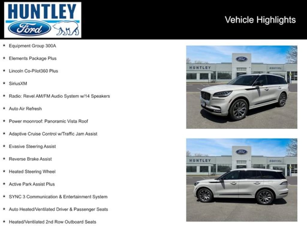 2021 Lincoln Aviator 3.0L V6, Active Park Assist Plus, Adaptive Cruise Control w/Traffic Jam Assist, Auto Air Refresh, Auto Heated/Ventilated Driver & Passenger Seats, Cargo Area Cover, Elements Package Plus, Equipment Group 300A, Evasive Steering Assist, Heated Steering Wheel, Heated VisioBlade Wipers, Heated/Ventilated 2nd Row Outboard Seats, Lincoln Co-Pilot360 Plus, Power moonroof: Panoramic Vista Roof, Radio: Revel AM/FM Audio System w/14 Speakers, Rain sensing wipers, Reverse Brake Assist, SiriusXM, SYNC 3 Communication & Entertainment System, Wheels: 21" Bright-Machined Aluminum. CARFAX One-Owner.