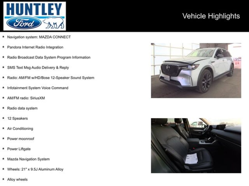 2025 Mazda CX-90 12 Speakers, Air Conditioning, Alloy wheels, AM/FM radio: SiriusXM, Infotainment System Voice Command, Mazda Navigation System, Navigation system: MAZDA CONNECT, Pandora Internet Radio Integration, Power Liftgate, Power moonroof, Radio Broadcast Data System Program Information, Radio data system, Radio: AM/FM w/HD/Bose 12-Speaker Sound System, SMS Text Msg Audio Delivery & Reply, Wheels: 21" x 9.5J Aluminum Alloy. Clean CARFAX. CARFAX One-Owner.