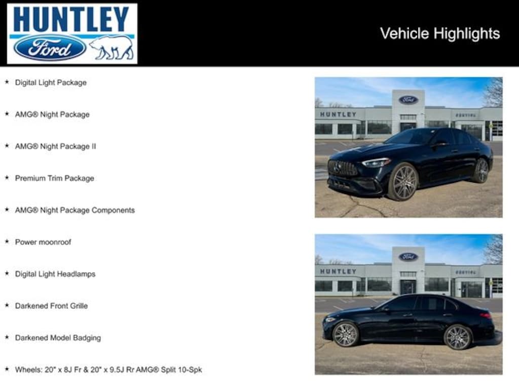 2023 Mercedes-Benz C-Class 4MATIC®, AMG® Night Package, AMG® Night Package Components, AMG® Night Package II, Darkened Front Grille, Darkened Model Badging, Digital Light Headlamps, Digital Light Package, Power moonroof, Premium Trim Package, Wheels: 20" x 8J Fr & 20" x 9.5J Rr AMG® Split 10-Spk. CARFAX One-Owner.