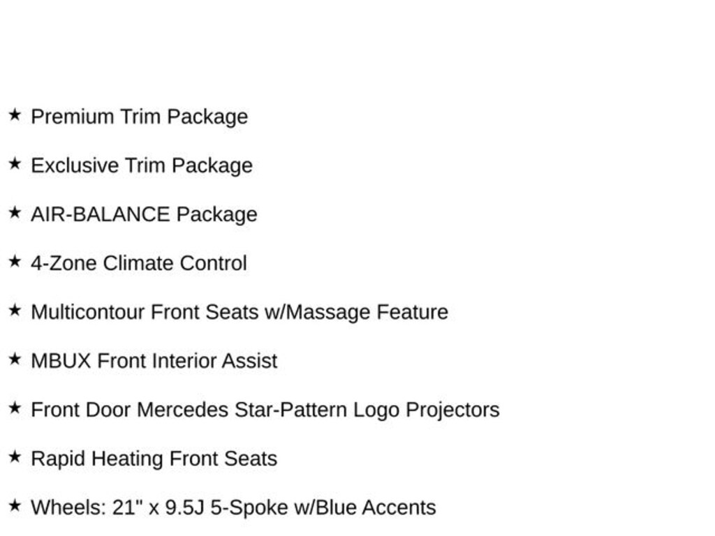 2023 Mercedes-Benz EQS 1-Speed Automatic 4-Zone Climate Control, AIR-BALANCE Package, Exclusive Trim Package, Front Door Mercedes Star-Pattern Logo Projectors, MBUX Front Interior Assist, Multicontour Front Seats w/Massage Feature, Premium Trim Package, Rapid Heating Front Seats, Wheels: 21" x 9.5J 5-Spoke w/Blue Accents. CARFAX One-Owner. 79/77 City/Highway MPG Electric Motor Odometer is 3022 miles below market average!