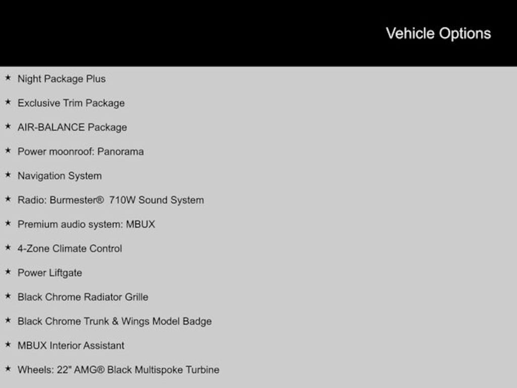 - Wheels: 22" AMG® Black Multispoke Turbine
