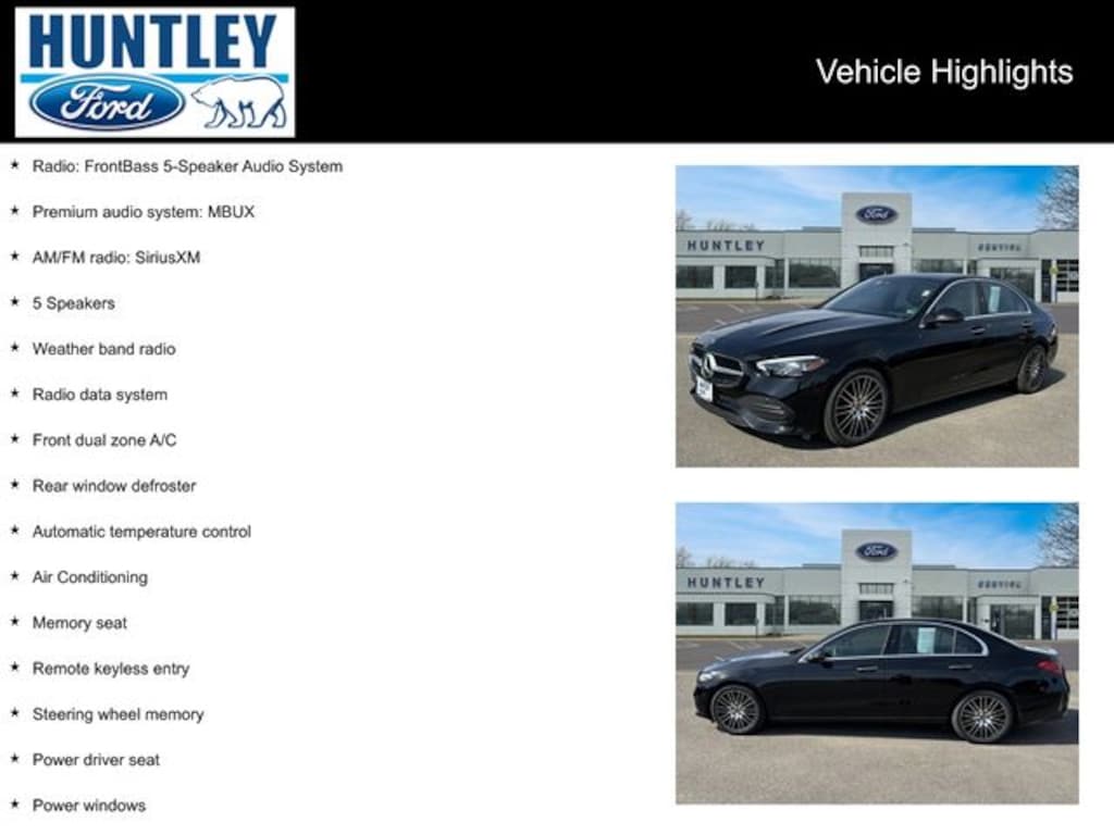 2025 Mercedes-Benz C-Class 4MATIC®, 11.9" Center Touchscreen Display, 18" 5-Spoke Wheels, 5 Speakers, Air Conditioning, Alloy wheels, AM/FM radio: SiriusXM, Automatic temperature control, Front dual zone A/C, Memory seat, Power driver seat, Power moonroof, Power steering, Power windows, Premium audio system: MBUX, Radio data system, Radio: FrontBass 5-Speaker Audio System, Rear window defroster, Remote keyless entry, Steering wheel memory, Steering wheel mounted audio controls, Weather band radio. Clean CARFAX. CARFAX One-Owner.