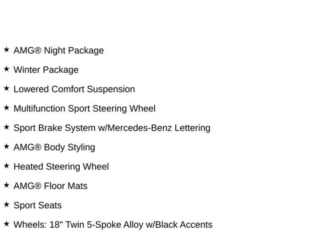 2025 Mercedes-Benz CLA 8 Speed Dual Clutch AMG® Body Styling, AMG® Floor Mats, AMG® Night Package, Heated Steering Wheel, Heated Washer System, Lowered Comfort Suspension, Multifunction Sport Steering Wheel, Sport Brake System w/Mercedes-Benz Lettering, Sport Seats, Wheels: 18" Twin 5-Spoke Alloy w/Black Accents, Winter Package. Clean CARFAX. CARFAX One-Owner. 25/34 City/Highway MPG 2.0L I4 Turbocharged