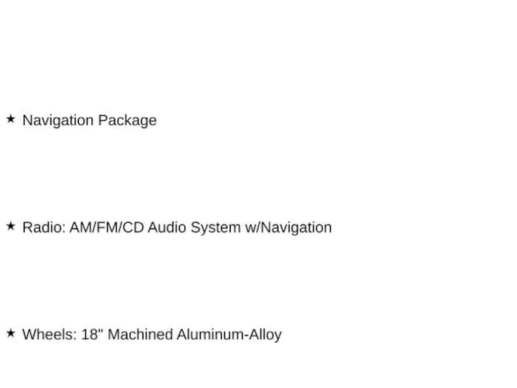 - Radio: AM/FM/CD Audio System w/Navigation