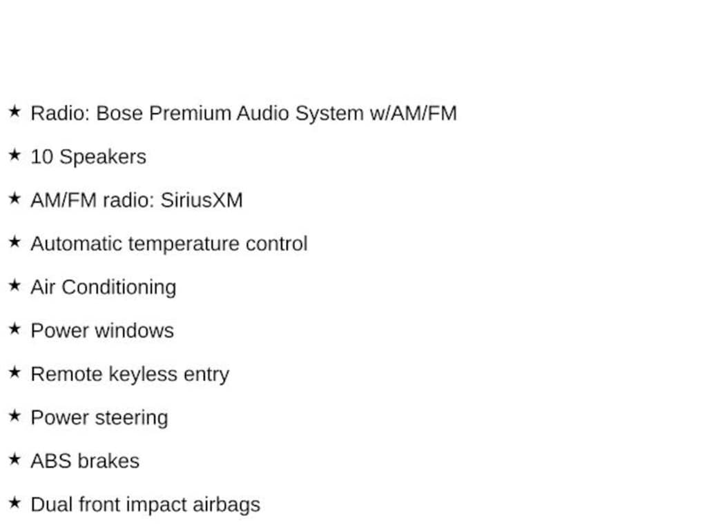 - Radio: Bose Premium Audio System w/AM/FM
