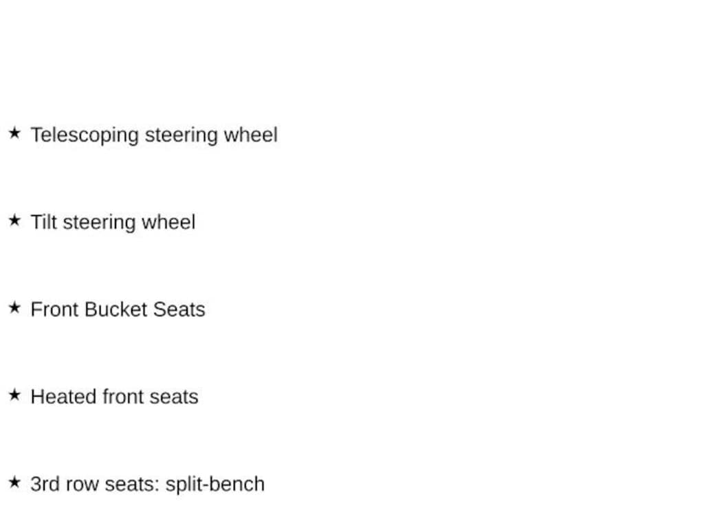 - Interior maximum rear cargo volume: 2,701 L (95 cu.ft.)