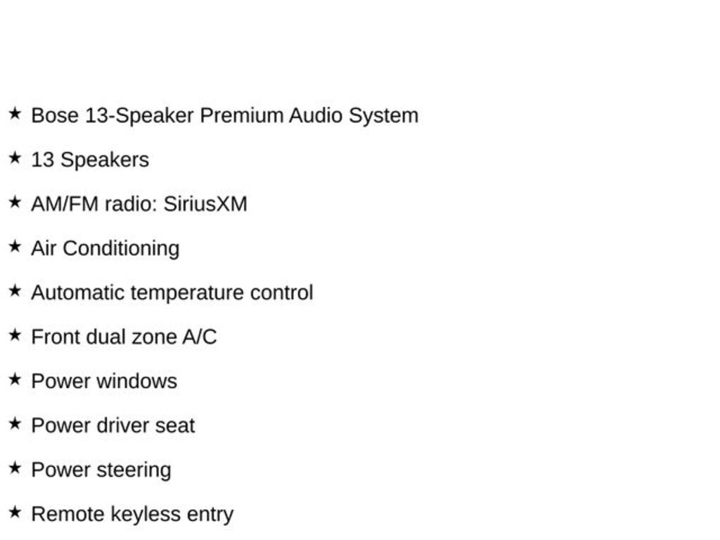 2023 Nissan Armada 7-Speed Automatic 4WD, 13 Speakers, 3rd row seats: split-bench, 4-Wheel Disc Brakes, ABS brakes, Air Conditioning, AM/FM radio: SiriusXM, Automatic temperature control, Bose 13-Speaker Premium Audio System, Driver door bin, Dual front impact airbags, Front Bucket Seats, Front dual zone A/C, Headphones, Heated front seats, Heated steering wheel, Illuminated entry, Low tire pressure warning, Power driver seat, Power steering, Power windows, Remote keyless entry, Tachometer, Telescoping steering wheel, Tilt steering wheel, Traction control. 5.6L V8 DOHC 32V LEV3-ULEV125 400hp