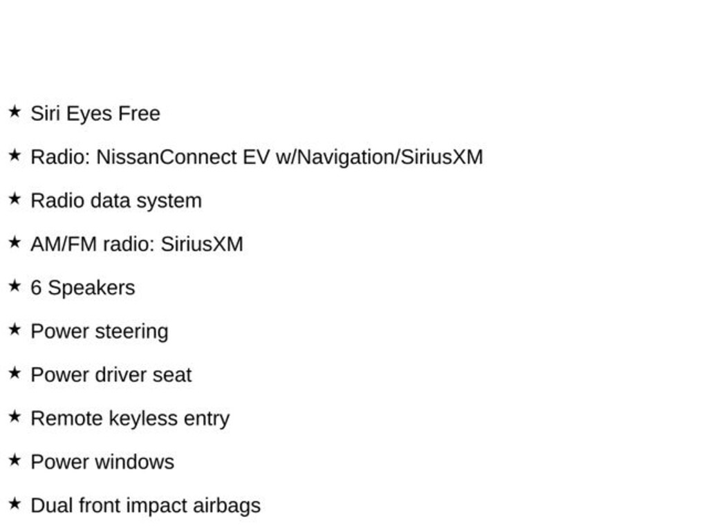 - Radio: NissanConnect EV w/Navigation/SiriusXM