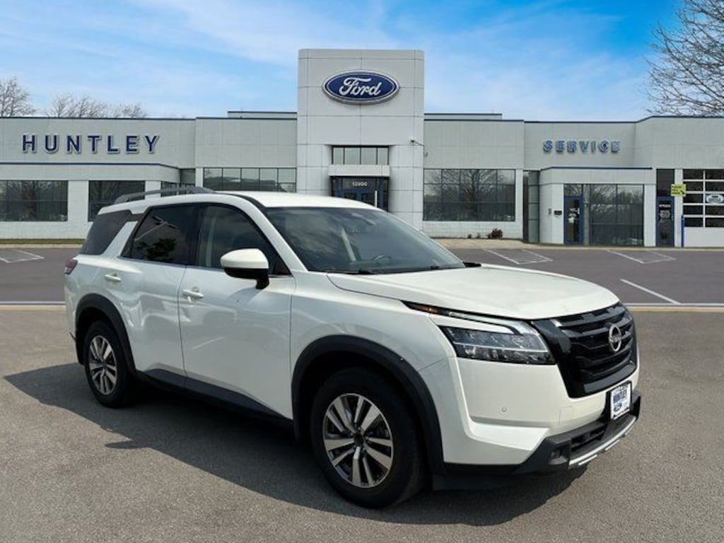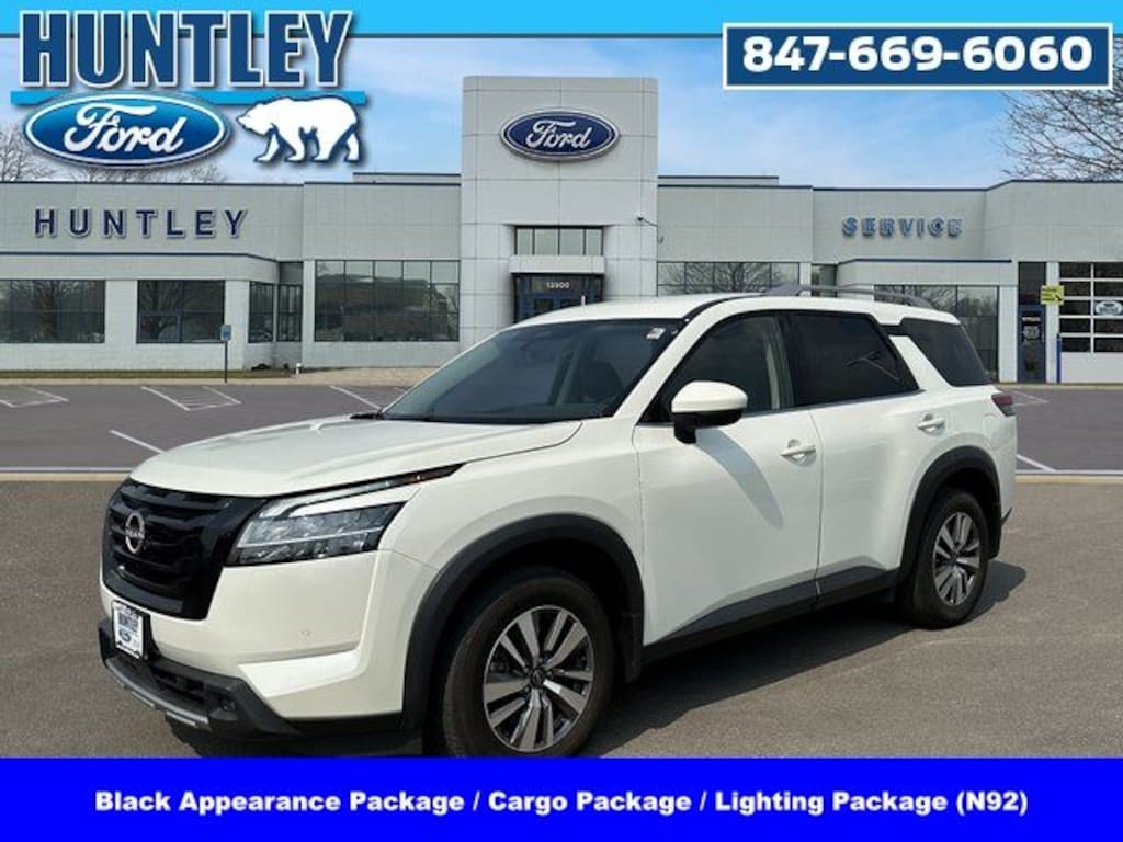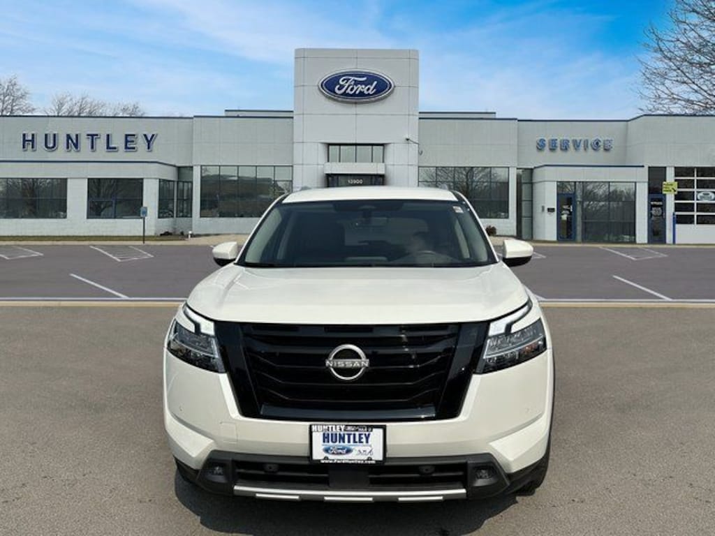2023 Nissan Pathfinder 4WD, 18" Machined Alloy Wheels, Alloy wheels, AM/FM radio: SiriusXM, Black Appearance Package, Black Grille (K10), Black Liftgate Emblems, Cargo Area Protector, Cargo Net, Cargo Package, First Aid Kit, Illuminated Kick Plate, Lighting Package (N92), NissanConnect w/Navigation & Services, Pathfinder Wordmark, Power steering, Power windows, Radio: AM/FM Audio System, Remote keyless entry, Welcome Lighting. Clean CARFAX. CARFAX One-Owner.
