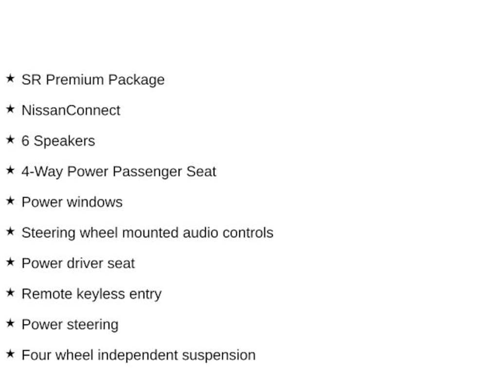 2024 Nissan Altima CVT with Xtronic CVT with Xtronic, 2-Way Driver Power Lumbar Support, 4-Way Power Passenger Seat, 4-Wheel Disc Brakes, 6 Speakers, ABS brakes, Bumpers: body-color, Dual front impact airbags, Four wheel independent suspension, Heated Front Seats, Leather-Appointed Seat Trim, Low tire pressure warning, NissanConnect, Power driver seat, Power steering, Power windows, Premium Sport Interior Finishers, Remote keyless entry, Single Panel Moonroof, SR Premium Package, Steering wheel mounted audio controls, Tachometer, Telescoping steering wheel, Tilt steering wheel, Trip computer. CARFAX One-Owner. 26/36 City/Highway MPG 2.5L 4-Cylinder DOHC 16V Odometer is 15287 miles below market average!