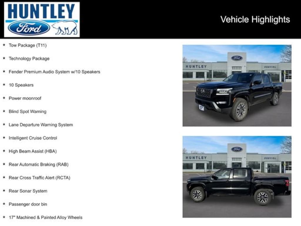 2024 Nissan Frontier 4WD, 10 Speakers, 17" Machined & Painted Alloy Wheels, Blind Spot Warning, Fender Premium Audio System w/10 Speakers, High Beam Assist (HBA), Intelligent Cruise Control, Lane Departure Warning System, Passenger door bin, Power moonroof, Rear Automatic Braking (RAB), Rear Cross Traffic Alert (RCTA), Rear Sonar System, Technology Package, Tow Package (T11). Clean CARFAX. CARFAX One-Owner.