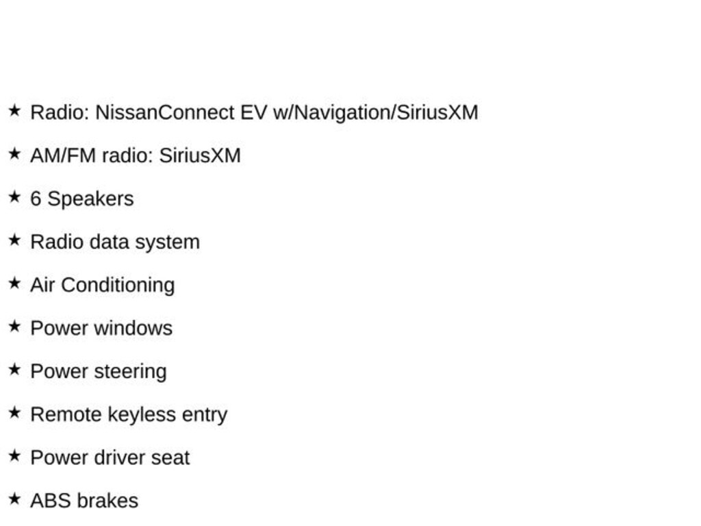 - Radio: NissanConnect EV w/Navigation/SiriusXM