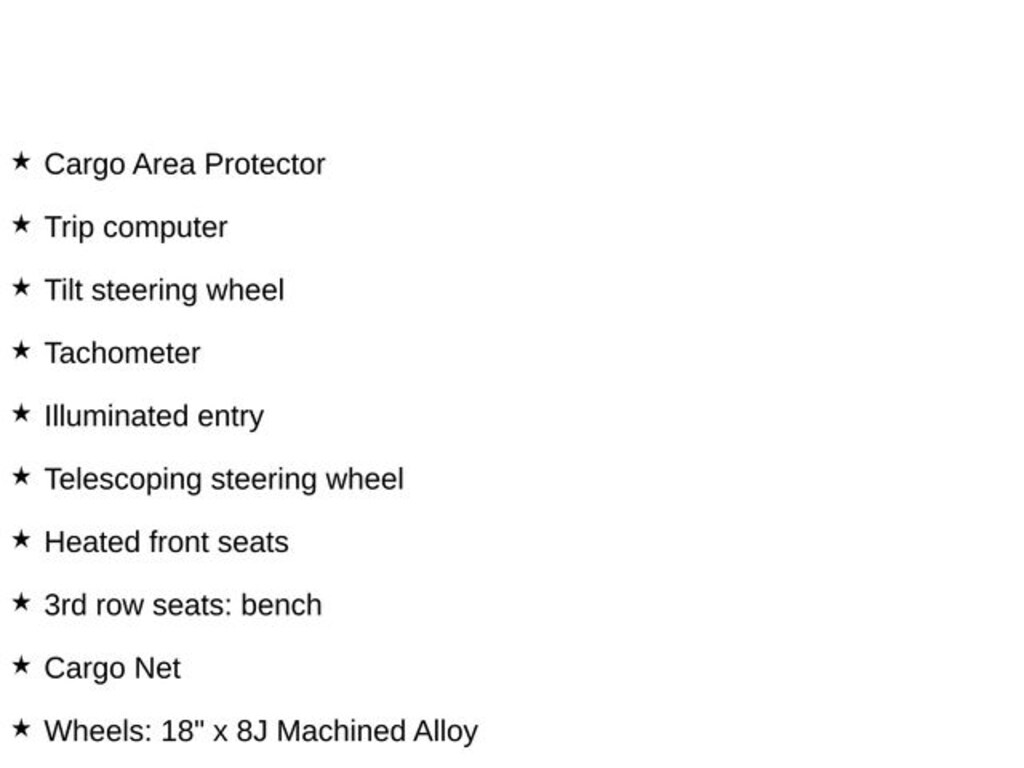 - Interior maximum rear cargo volume: 2,280 L (80 cu.ft.)