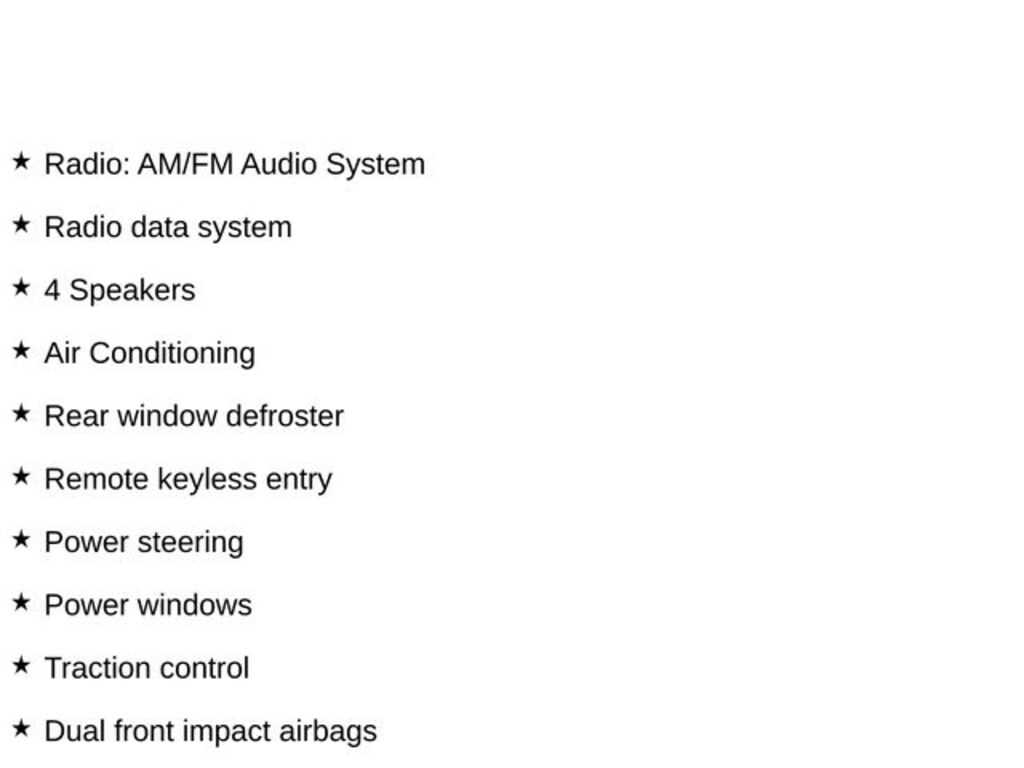 - Radio: AM/FM Audio System