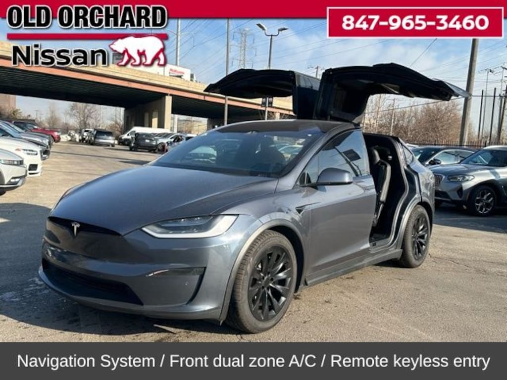 2023 Tesla Model X 1-Speed Automatic ABS brakes, Active Cruise Control, Alloy wheels, Compass, Electronic Stability Control, Emergency communication system, Front dual zone A/C, Heated door mirrors, Heated front seats, Heated rear seats, Illuminated entry, Low tire pressure warning, Navigation System, Power Liftgate, Remote keyless entry, Traction control. CARFAX One-Owner. 107/97 City/Highway MPG Electric Motor