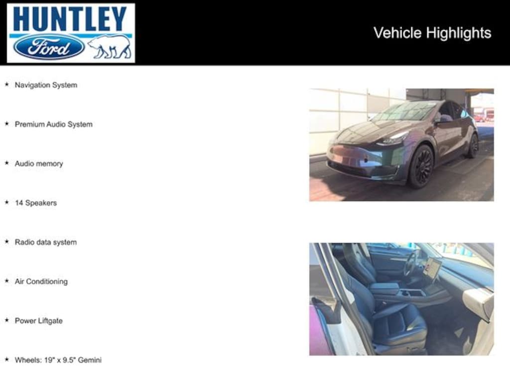 2023 Tesla Model Y 14 Speakers, Air Conditioning, Audio memory, Navigation System, Power Liftgate, Premium Audio System, Radio data system, Wheels: 19" x 9.5" Gemini.