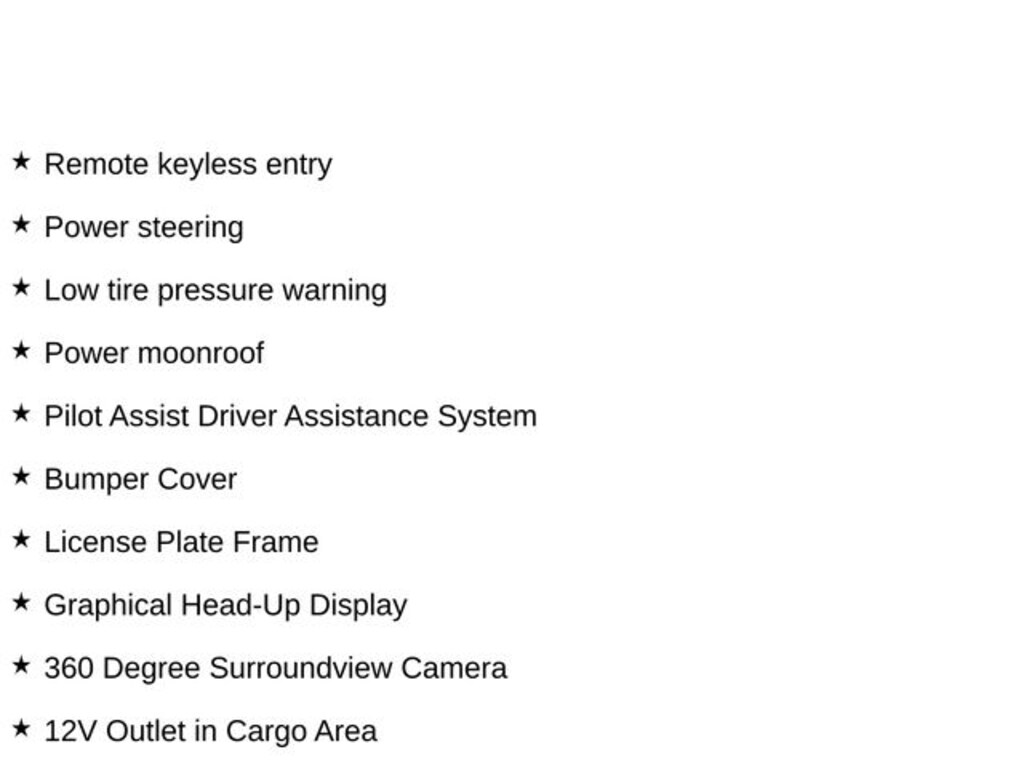 - Rear collision: Cross Traffic Alert w/Autobrake mitigation